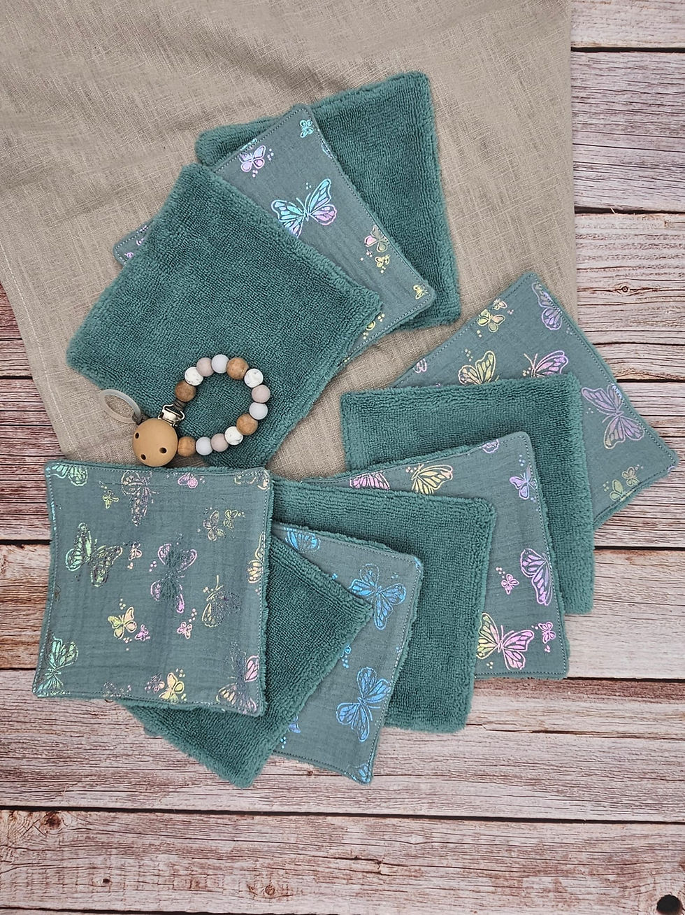 Nos lingettes sont conçues avec du linge éponge en bambou et de la gaze de coton pour que la douceur soit au cœur de nos gestes quotidiens avec nos enfants.